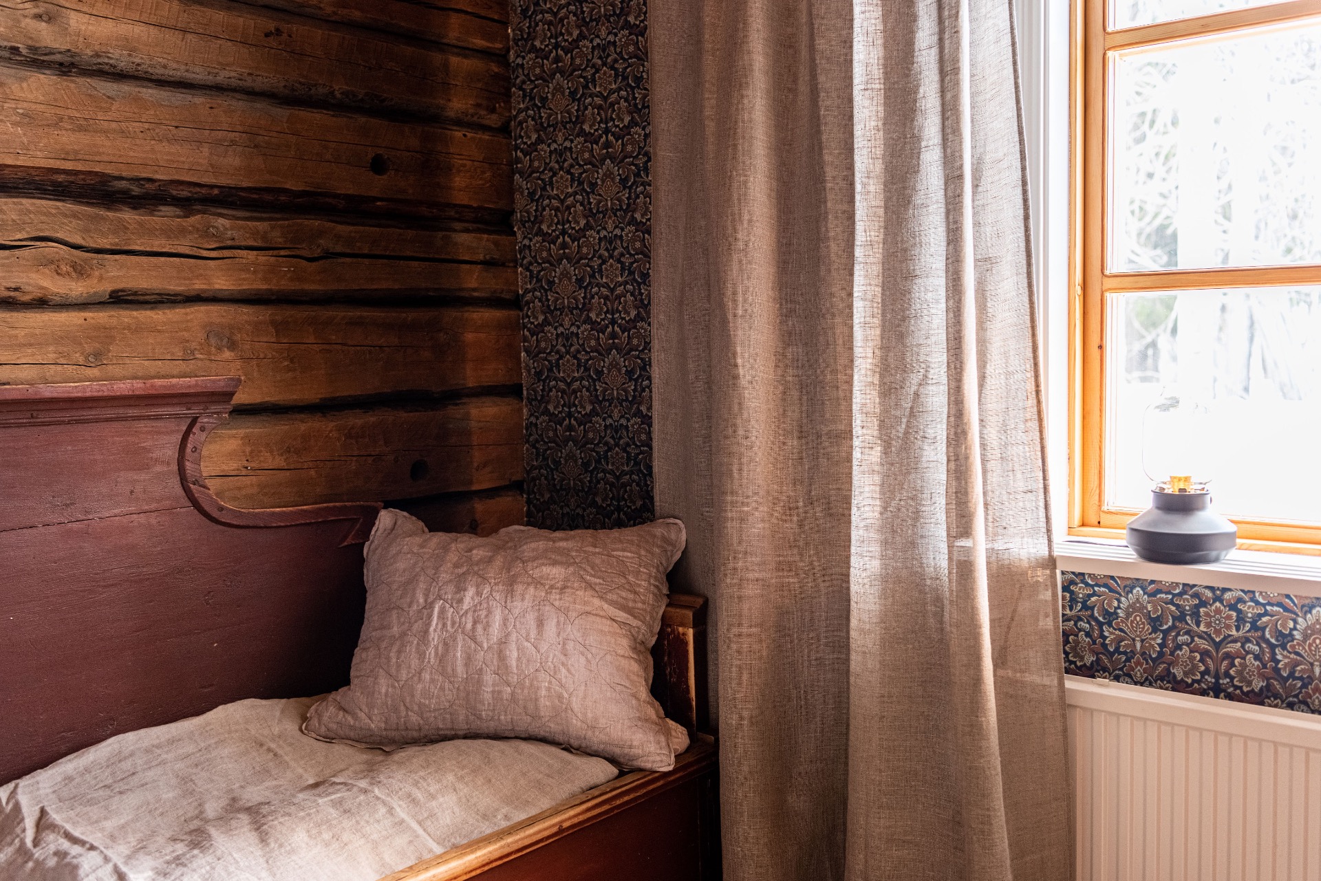 Det är något speciellt med en byggnad som funnits i familjen i över 100 år. När vi tog över gården från Mikaels släkt kände vi att den här platsen ville vi öppna up för världen. År 2019 påbörjade vi en varsam renovering av huset för att återställa det i sitt ursprungliga skick. Med traditionella metoder och ett hållbarhetsfokus har vi rustat upp det vackra timmerhuset.